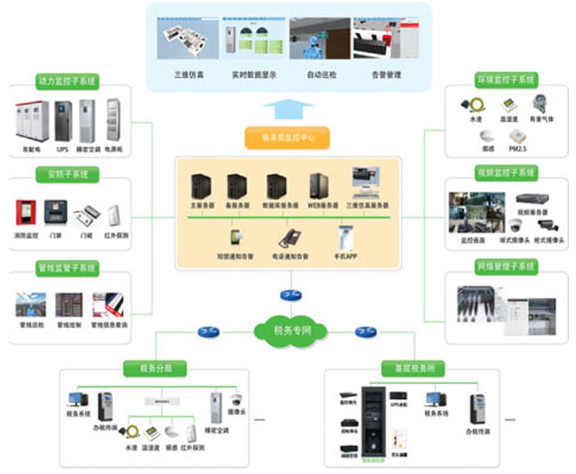 烟台市税务局信息中心应用DF7101机房基础设施管理系统,将市局信息中心机房和下辖的14个区县分局机房及若干基层分局机房进行统一监控,解决了市局和县区局之间机房监控各自为政、信息孤岛的问题。平台对各机房动力环境监控系统、门禁系统、视频监控系统、设备资产、模块化机柜等统一监控管理,并通过3D建模实现设备的智能巡检,实现了对机房基础设施的规范化管理,对出现的各类问题及时发现和解决,减轻运维压力,减少因设备及环境问题对办税业务的影响。