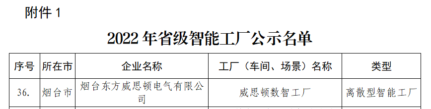 日前,山东省工信厅对2022年山东省智能工厂名单进行了公示,千亿qy88国际官网入口旗下威思顿电气的“威思顿数智工厂”成功入选。