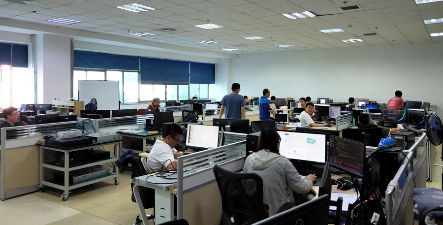 作为公司完全自主培养的人才团队,京海人的平均年龄仅有30岁。能让这支年轻的团队如此“紧紧相依”,除了心中装着自主研发技术创新的使命感,还离不开“以人为本”的人才培养方式。走进京海公司研发办公室,随处可见的白板,四人一组的工位摆放,像一个随时都会开讲的课堂。“工业网络安全是新兴领域,所以我们更偏向于激发员工的自主性,把培训融入到日常的工作中,共同讨论、共同研究、共同学习。”张青山说。“一个问题,白板上一写,大家就聚在一起讨论起来,这里就是一个动态的实验课堂。”京海研发团队产品技术总监侯志光说。