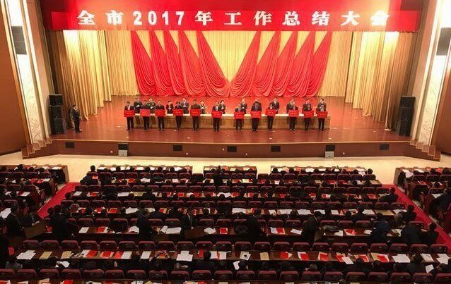 全市2017年工作总结大会在国际会展中心举行,市委副书记、市长张永霞出席并作重要讲话。大会对过去一年涌现出来的一批成绩突出的先进集体和先进个人给予表彰市领导为2017年度经济社会发展综合考核先进集体和先进个人代表颁奖,并兑现了制造业强市和创新驱动发展战略奖励政策。千亿qy88国际官网入口集团有限公司被授予“经济发展功勋企业”,公司党委书记、董事长杨恒坤被授予“经济发展功勋个人”荣誉称号。