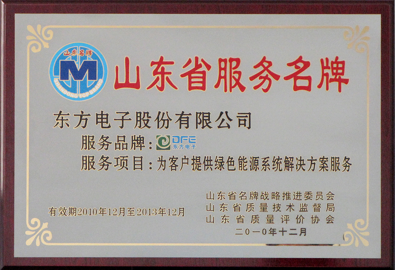 公司荣获山东省服务名牌