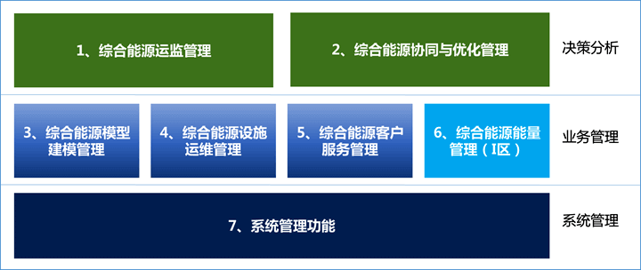 东莞综合能源互联共享平台基于“云大物移智”技术,是以松山湖高新产业园区为试点的综合能源互联共享平台,面向电网、政府、供能企业、用户、竞争性企业等多方主体,实现用户侧、分布式资源全面状态感知,支撑竞争性业务的横向延展,实现多能协同优化、一体化设施运维以及客户服务等具有用户粘性和价值创造的功能。共享平台主要包括综合能源运监管理、综合能源协同与优化、综合能源模型建模、综合能源能量管理(IEMS)、综合能源设施运维服务和综合能源客户服务六大业务模块。共享平台目前已接入了光伏发电站6个、储能站6个、充电站2个(桩20条)、柔性负荷3个以及由以上元素任意组合形成的微网2个、智能配电房1个,同时具备能源路由器、冷热电三联供机组的管理能力,实现了用能侧主要元素的全覆盖。