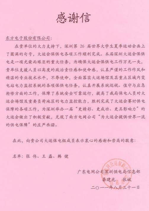 8月23日,世界大学生运动会在深圳圆满落幕,千亿qy88国际官网入口作为大运会保电企业见证了世界大学生体育运动的蓬勃发展。千亿qy88国际官网入口技术中心系统部与工程部坚守“忠于职守,全力以赴,誓保大运电网安全”的信念,联手实现了大运保供电期间系统零故障、零缺陷的目标。