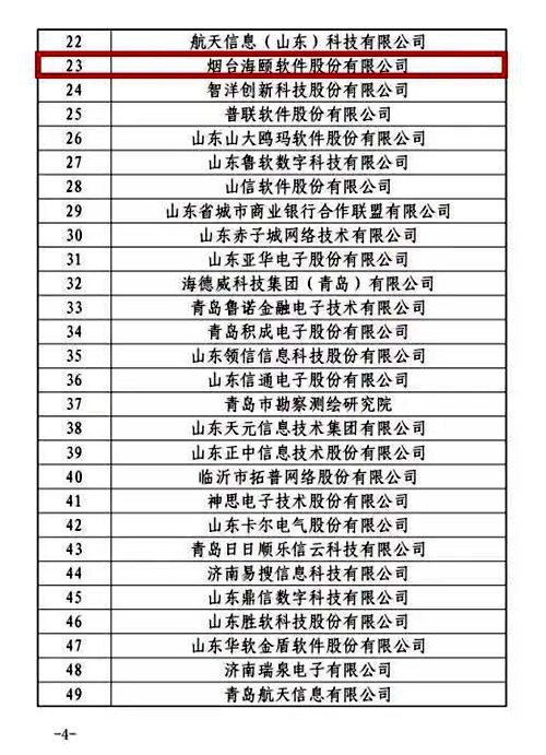 本次集团公司与海颐软件双双入围山东软件企业百强,充分显示集团公司在山东省软件企业中领先的综合能力。下一步,集团公司将继续发挥软件百强企业的引领带头作用,为山东省软件和信息技术服务业高质量发展贡献力量。