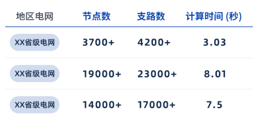 千亿qy88国际官网入口技术团队对状态估计计算节点采用半动态优化编号方法,从Givnes正交变换的原理展开优化,极大幅度减少数值计算工作量,提高Givens计算速度,对提高电力系统状态估计的效率起着举足轻重的作用。在某省级调控云1.2万计算节点的网络测试,单次正交变换耗时从20多秒提升到0.1秒,效果显著。在南网、国网部分网调等大电网计算运行,完成一次完整的状态估计计算,用时统计如下表: