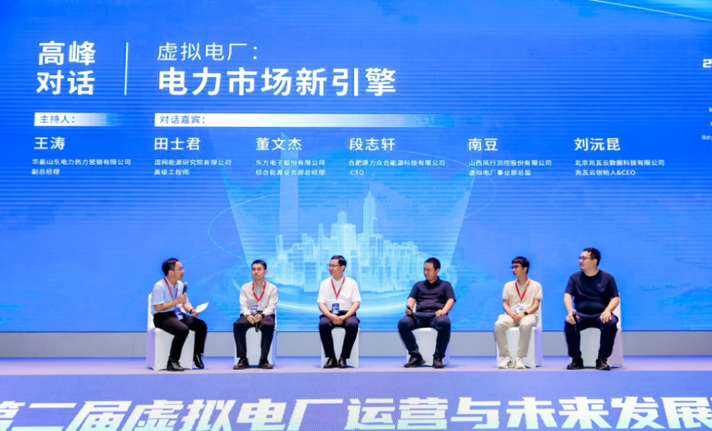 大会还进行了“虚拟电厂:电力市场新引擎”高峰对话,华能山东电力热力营销有限公司副总经理王涛主持对话,国网能源研究院有限公司高级工程师田士君、千亿qy88国际官网入口股份有限公司综合能源业务部总经理董文杰、合肥原力众合能源科技有限公司CTO段志轩、山西风行测控股份有限公司虚拟电厂事业部总监南豆、北京兆瓦云数据科技有限公司兆瓦云创始人&CEO刘沅昆深入探讨了虚拟电厂的发展现状与前景,以及可行性的商业模式。