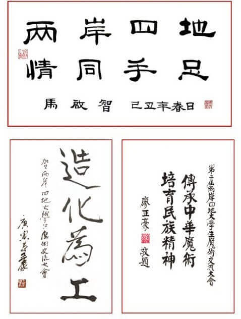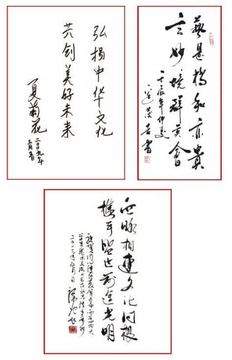 最近,组委会纷纷接到来自台湾、澳门及大陆各高层领导为本次活动的题词。他们是,中国国民党名誉主席连战;澳门前特首、全国政协副主席何厚铧;全国政协副主席阿不来提.阿不都热西提;中国文联副主席边发吉;第十届全国人大代表、湖南省政协副主席、现任中国民族文化艺术基金会名誉理事长谭仲池;历届为本活动题词的领导有:中国亲民党主席宋楚瑜;前文化部部长、当代著名作家王蒙;第十六届中央委员、全国人大民族委员会主任马启智;台湾前法务部部长、台湾财团法人向阳公益基金会会长廖正豪;前任中国文联副主席夏菊花等。在此,组委会向一直关注及鼓励我们的社会各界领导及同仁们表示由衷的感谢!